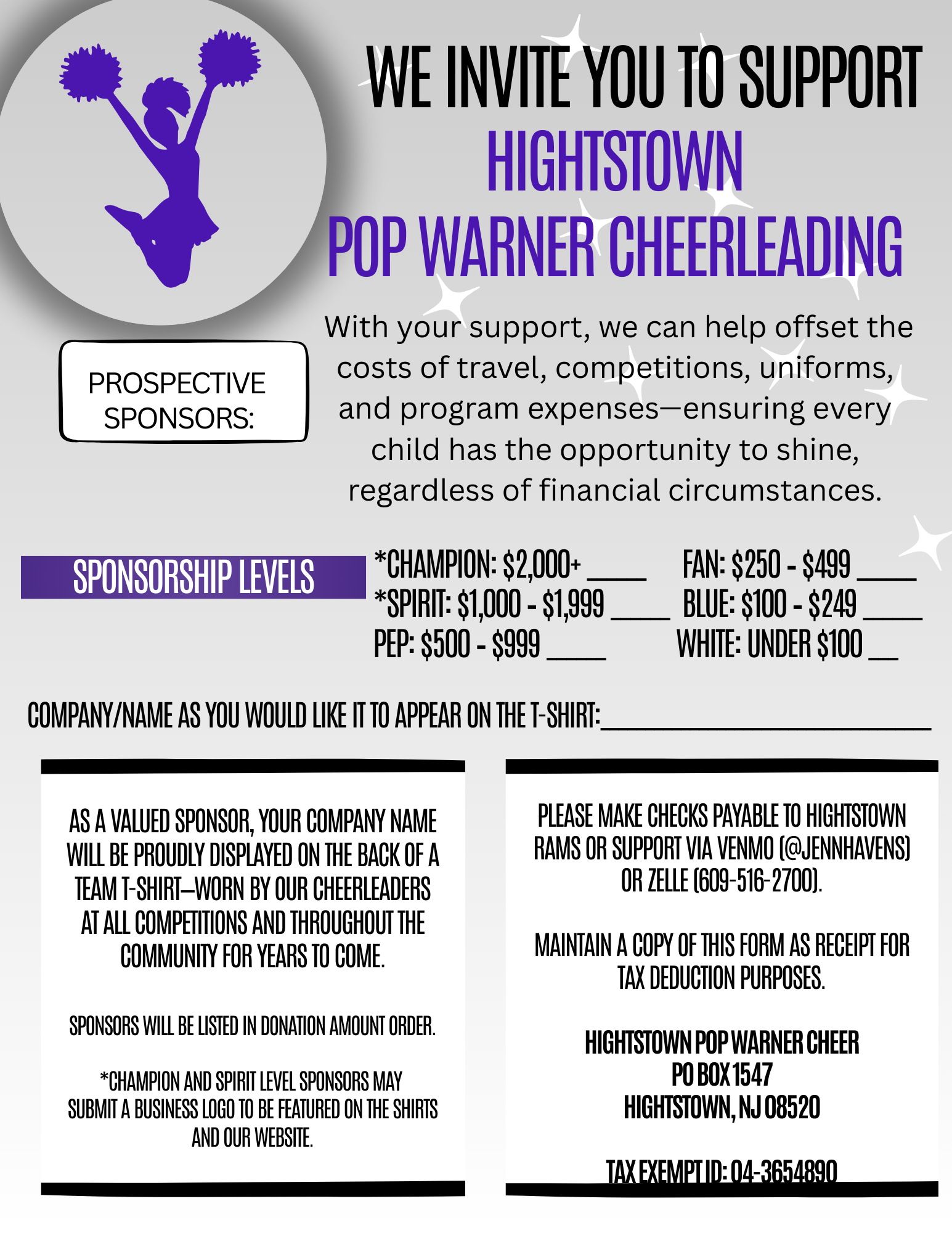 If you are interested in supporting HPW Cheer through one of the fundraiser on the calendar please contact any PW cheerleader/coach or email the organization. Thank you in advance for your support!
